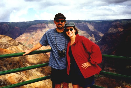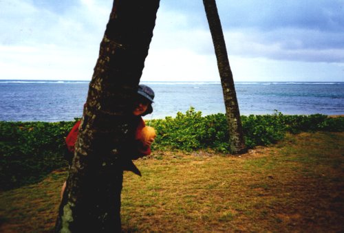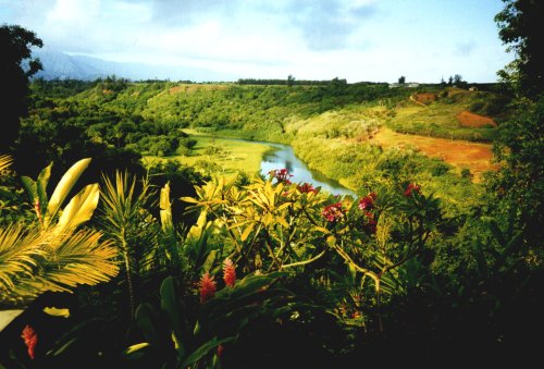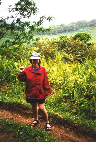 | We flew across the Pacific Ocean and ended up in Kauai where we spent the first week. Our Kauai home was a bed and breakfast named Hale Honua Lani which means "where heaven meets earth". It was indeed a beautiful spot located on a cliff overlooking the Kilauea river as it meets the Pacific. Our adventures from this north shore location included many gorgeous waterfalls, beaches, fresh fish meals and a great catamaran sailing trip. |